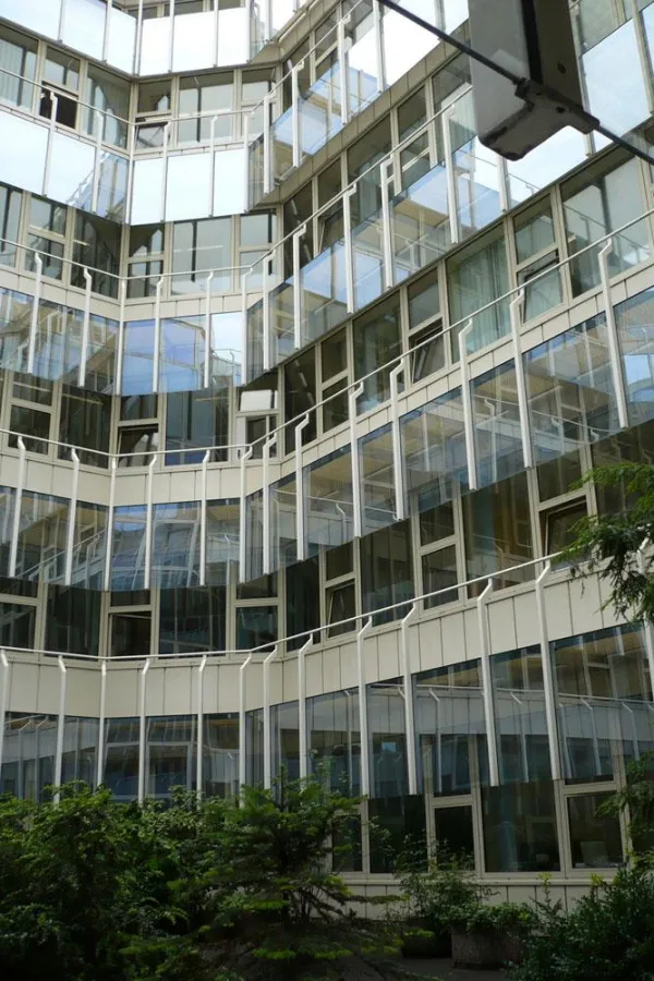 Schnell war in der Projektphase klar geworden, dass ein kompletter Austausch der annähernd 1600 Quadratmeter umfassenden Prallscheibenglasfläche wegen erheblicher Ausbau- und Entsorgungskosten nicht in Frage kam. Eine Folienbeschichtung „von der Stange“ konnte aber auch nicht die Lösung sein: Schließlich, so Haverkamp, sollte zum Beispiel Sorge dafür getragen werden, dass die Folie im eingebauten Zustand zusammen mit dem Glas nicht zu viel Licht reduziere, weil es in den Räumen auch in den Wintermonaten nicht zu dunkel werden dürfe. Zudem müssten die E.ON-Mitarbeiter die Möglichkeit haben, die Lichtverhältnisse an ihren jeweiligen Arbeitsplätzen mittels bereits vorhandenen, variablen Blendschutzanlagen in Form von Vertikal-Lamellenvorhängen individuell zu regeln.
