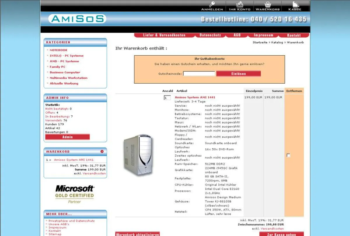 Mit attraktiven Angeboten lockt AMISOS in ihrem Endkundenportal die PC-Käufer in kleinen Büros und Unternehmen, aber auch zu Hause wie etwa mit den Allroundern aus der Reihe der »Family PCs«. So finden preisbewusste Online-Besteller im AMI 1451 perfekt aufeinander abgestimmte Markenkomponenten, die eine optimale Ausstattung der Rechner bieten. Ob für betriebliche Anwendungen im Büro oder für den Einsatz im heimischen Netzwerk, mit den neuen Core2 Duo Prozessoren von Intel bedeuten die Family PCs von AMISOS für den Käufer die allererste Wahl. Denn zurzeit gibt es faktisch keine schnelleren Rechner in diesem Segment. Mit den Rabatt-Codes aus der laufenden Anzeigenkampagne können Online-Besteller der AMISOS PC-Linien bei Eingabe einer Zeichenfolge zudem einen Extrapreisnachlass von 10 Euro und mehr erzielen.