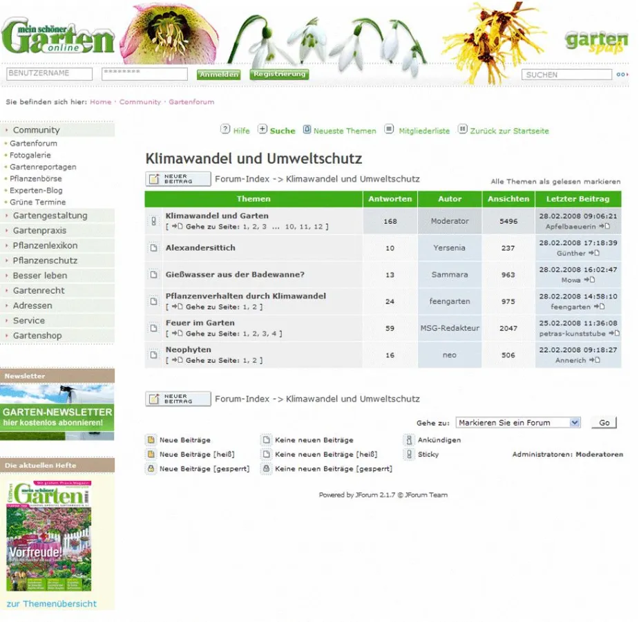 Parallel zur neuen Serie im Heft gibt es auf http://www.mein-schoener-garten.de ein Klimaforum. „Durch die ständig wachsende Zahl unserer User bekommen wir immer mehr Erfahrungsberichte und Beiträge im Forum und im Redaktionsblog. Hier können sich Gleichgesinnte untereinander und mit unseren Redakteuren über wichtige Themen wie den Klimawandel austauschen“, erklärt Chefredak-teur Jürgen Wolff.