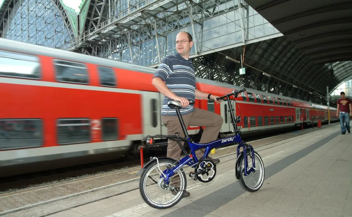 Viele Radfahrer denken beim Thema Eisenbahn jedoch nicht an den nächsten Urlaub. Sie nutzen den Zug für den täglichen Weg zur Arbeit oder als stressfreies Verkehrsmittel auf der Dienstreise – inklusive Notebook-Arbeitsplatz und Handyempfang. Diese Kundschaft ist nicht selten im ICE unterwegs, und da gelten für Fahrräder ganz andere Regeln: „Im ICE ist eine Fahrradmitnahme nicht möglich“, spricht Stefan Karpenstein von der DB AutoZug GmbH den alten Konfliktpunkt mit den Fahrrad-Lobbyisten an. Faltrad-Besitzer ficht das nicht an; sie dürfen ihren Klappflitzer mit in die schnellen Züge nehmen. Dass sie mir ihren kleinen Flitzern auf der Straße nicht das Nachsehen haben, dafür sorgen Hersteller wie riese und müller (www.r-m.de) und utopia-velo (www.utopia-velo.de), denn Falträder sind in beiderlei Wortsinnen reisetauglich: Sie gehen leicht auf Reisen und mit ihnen lässt sich gut reiseradeln. Bei Utopia kommt das neue Faltrad „Timor“(ab ca. 1.700 Euro), mit 20-Zoll-Rädern, die wahlweise mit 50 oder 60 mm messenden „Big Apple“-Pneus bereift werden. Das macht die Fahreigenschaften so Utopia-typisch ruhig und verlässlich, dass man beinahe vergisst, auf einem Faltrad zu sitzen.