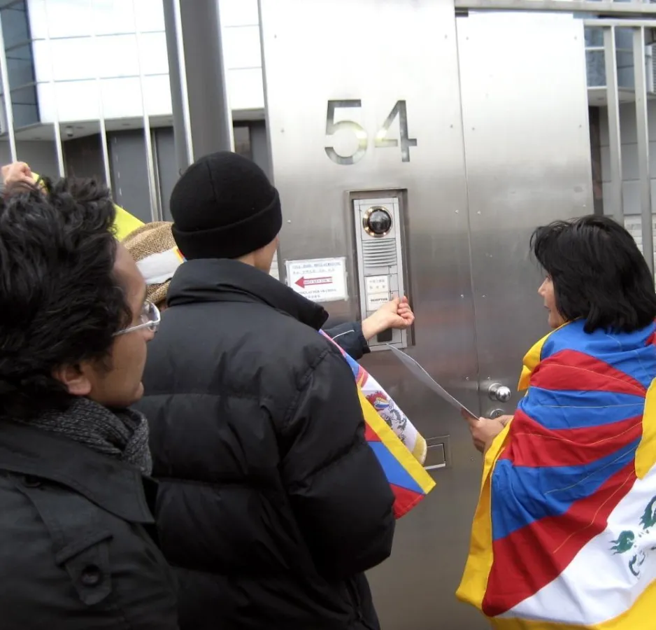 Tibeter und Tibeterinnen aus Berlin wollten ein Memorandum mit Forderungen an Staats-präsident Hu Jintao überreichen. Die Tibeter-Gemeinde aus Berlin konnte Ihre Forderung jedoch nur in den Briefkasten der Botschaft einwerfen, da ihnen der Einlaß verwehrt wurde.