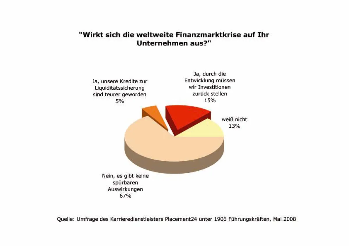 „Die Finanzmarktkrise ist aus Sicht der Führungskräfte noch nicht ausgestanden. Die Effekte auf Geschäftsbetrieb und eigenen Arbeitsplatz wirken mit Verzögerung jetzt direkt und spürbar stärker“, kommentiert Tonio Riederer von Paar, Gründer und Geschäftsführer von Placement24, die Umfrageergebnisse.