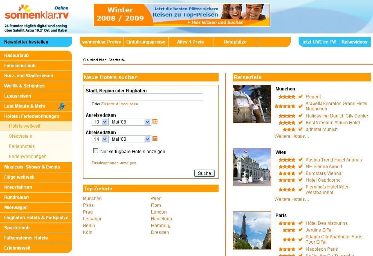 Berlin / München, 13. Mai 2008. sonnenklar.TV baut sein Hotelangebot im Onlinebereich aus und greift dabei auf das umfangreiche Portfolio von Booking.com zu. Alle Angebote der weltweit 40.000 Hotels sind ab sofort direkt und sicher bei Deutschlands führendem Reiseshoppingsender buchbar. „Die unkomplizierte Integration in unseren Onlineauftritt und das einzigartige Rankingprinzip, nach dem Booking.com seine Hotels listet, haben uns überzeugt“, so Matthias Deppe, Leiter Web Sales bei sonnenklar.TV, zu der Entscheidung, mit Europas führendem Hotelportal zu kooperieren. So spielt ein günstiger Preis zwar eine Rolle bei der Buchungsentscheidung der Gäste, er ist allerdings nicht das ausschlaggebende Kriterium. Dementsprechend finden sich die Hotels auf den vorderen Plätzen der Suchergebnisse, die den Anforderungen der Gäste an Lage, Ausstattung und Leistungen am ehesten entsprechen und bereits von anderen Gästen mit ähnlichen Wunschkriterien bevorzugt gebucht wurden. „Von der Kooperation mit sonnenklar.TV profitieren besonders unsere in den Onlineauftritt des populären Shoppingchannels integrierten Partnerhotels“, so Gillian Tans, die in ihrer Funktion als Geschäftsführerin von Booking.com die Deutschlandgeschäfte des Hotelportals verantwortet. sonnenklar.TV verzeichnet Monat für Monat circa 1,4 Millionen reiseaffine Besucher auf seinen Seiten. „Eine Zusammenarbeit mit so reichweitenstarken Partnern wie sonnenklar.TV trägt zu einem guten Teil zum Erfolg von Booking.com bei“, führt Tans weiter aus. Neben dem direkten Aufruf der eigenen Websites greifen Gäste bei der Zimmerbuchung häufig auch bei so bekannten Portalen wie Holidaycheck, Viamichelin, Map24, Travelscout, reise.de oder KLM auf die Hotelangebote von Booking.com zu. „Mehr als 3.000 namhafte Partner haben wir mittlerweile weltweit unter Vertrag“, so Tans.