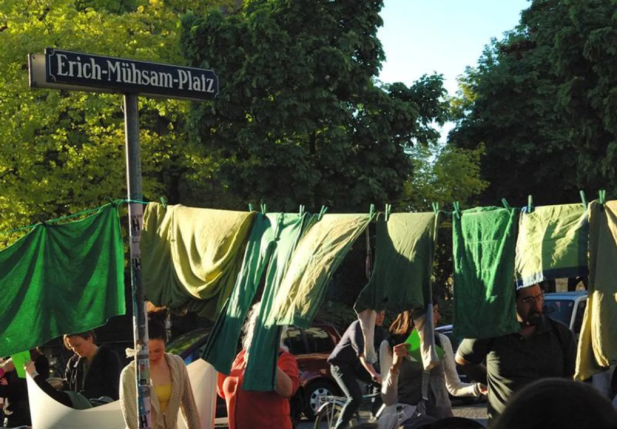 (openPR) Am Samstag, dem 31. Mai, tritt Performance-Künstlerin Dorothea Seror mit ihrer Aktion "Grüne-Wäsche-Leine" (Grünes Kleid für Grüne Achse) in Schwabing auf. Am Tag der Hofflohmärkte wird sie eine Wäscheleine entlang der grünen Achse vom Englischen Garten über die Münchner Freiheit bis zum Ackermannbogen spannen. Die gesamte Grüne Achse wird einen Tag lang eine Leine, an der Hunderte von grünen Klamotten hängen!