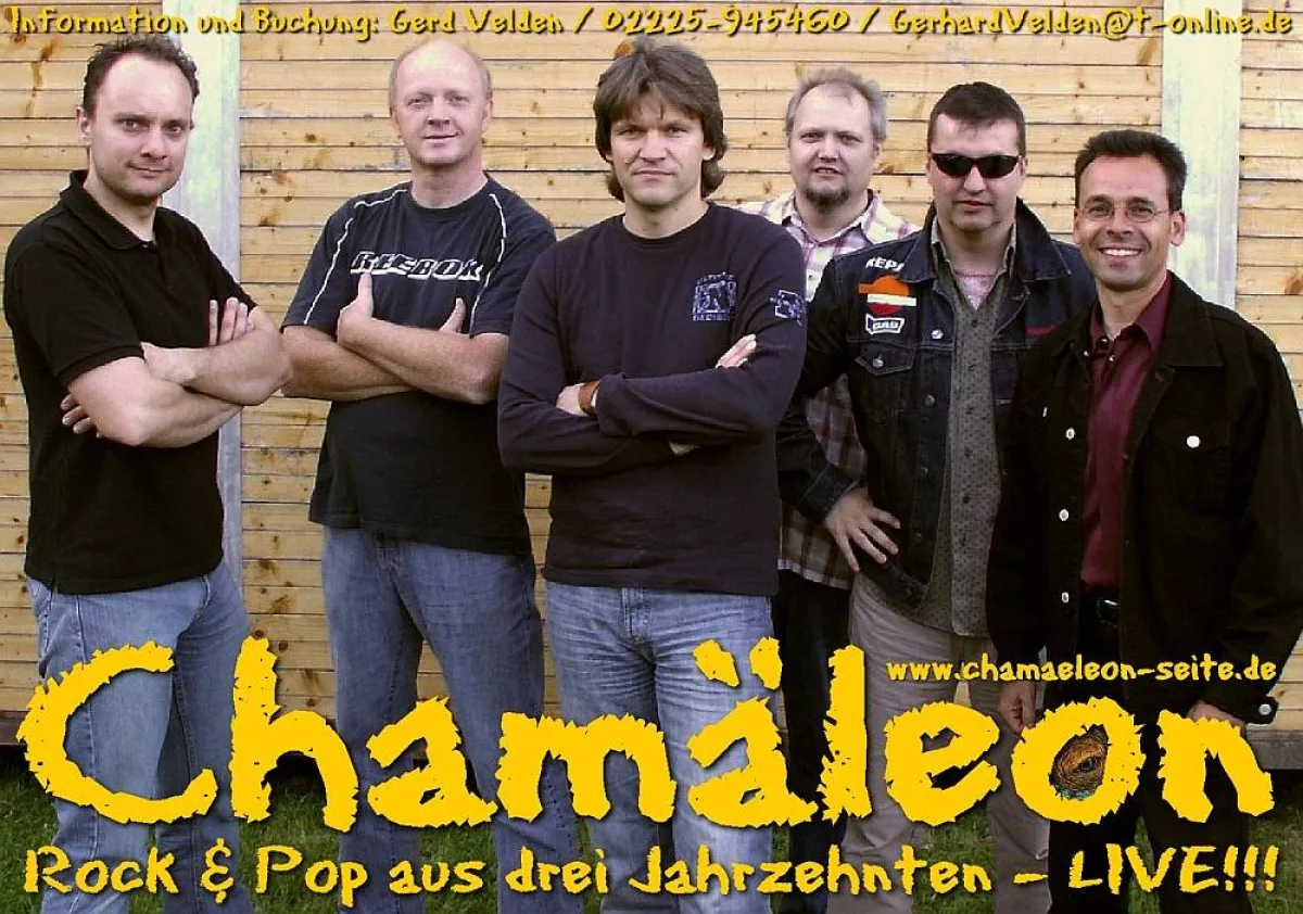 Fetzige Rock-Hymnen, Pop-Hits, die in die Beine gehen und Baladen fürs Herz - das ist die Mischung mit der die sechs Musiker von Chamäleon sich seit Jahren in der Region Köln/Bonn einen Ruf als variationsreiche und versierte Cover-Band erarbeitet haben. Mit Hits von den Siebziegern bis heute versteht Chamäleon das Publikum zu begeistern und mitzureißen.