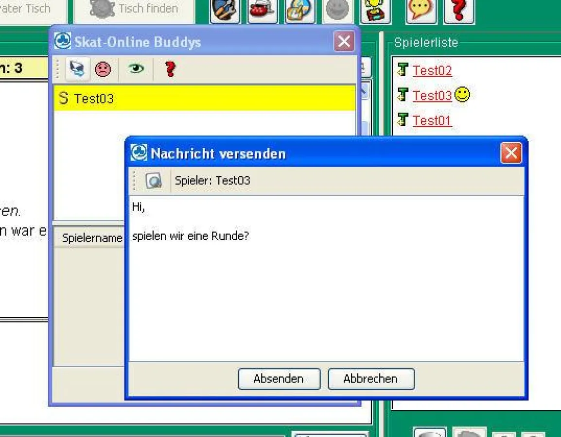 Die V 7 von Skat-Online bringt vor allem mehr Funktionen für Turnierspieler. Da gemäß der Internationalen Skatordnung (ISkO 5.5.4.) der Centeinsatz je Wertungspunkt auch bei einem organisierten Turnier gestattet ist, können sich die Spieler nun auf einen Einsatz einigen. Bei einem Spontanturnier kann die Spielbereitschaft genau definiert werden. Mit der Angabe des Startgeldes, der Serienanzahl und der möglichen Centabrechnung sind ab sofort profilgerichtete Einladungen zur Skatrunde möglich. Viele Spieler haben immer wieder bedauert, dass ihnen die aus dem Premium-Bereich bekannte Buddy-Funktion auf dem Turnierserver nicht zur Verfügung stand. In der aktuellen Version kann jeder Turnierspieler seine Freunde auswählen und sofort sehen, welcher Buddy schon auf dem Server anwesend ist. Um Turniere zu spielen, muss man bei Skat-Online im kostenlosen Standardbereich registriert sein und kann sich dann direkt bei www.skat-turniere.de anmelden. Wer den Turnierbetrieb erst einmal kennen lernen möchte, hat mit V 7 endlich die Chance, nach der Anmeldung 3 Testserien zu spielen. Die Testserien sind auch auf www.skat-en-deux.com, dem reinen Skatspiel zu zweit möglich.