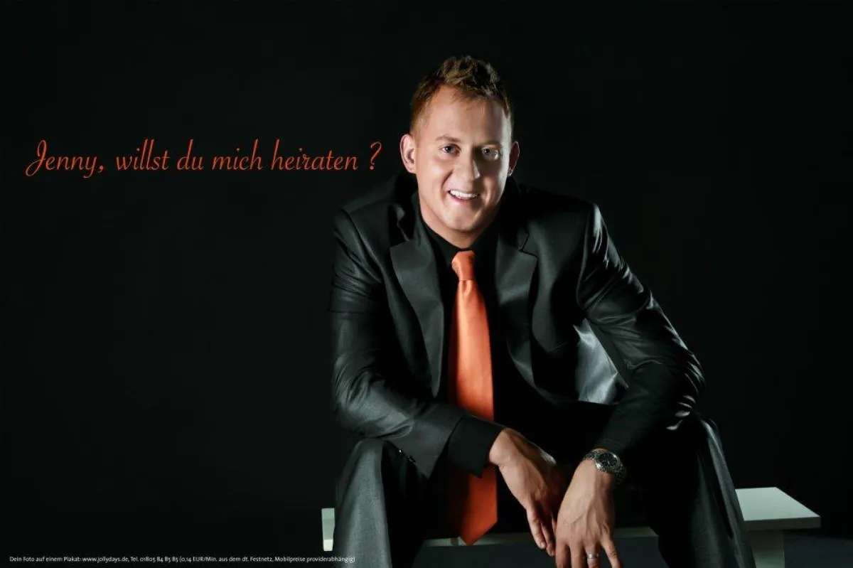 Ein junger Mann aus Laatzen bei Hannover nutzt aktuell das Jollydays-Angebot schon für einen Heiratsantrag der besonderen Art. Er fasste sich ein Herz und hält mit seinem Plakatmotiv derzeit um die Hand seiner Freundin Jenny an.
