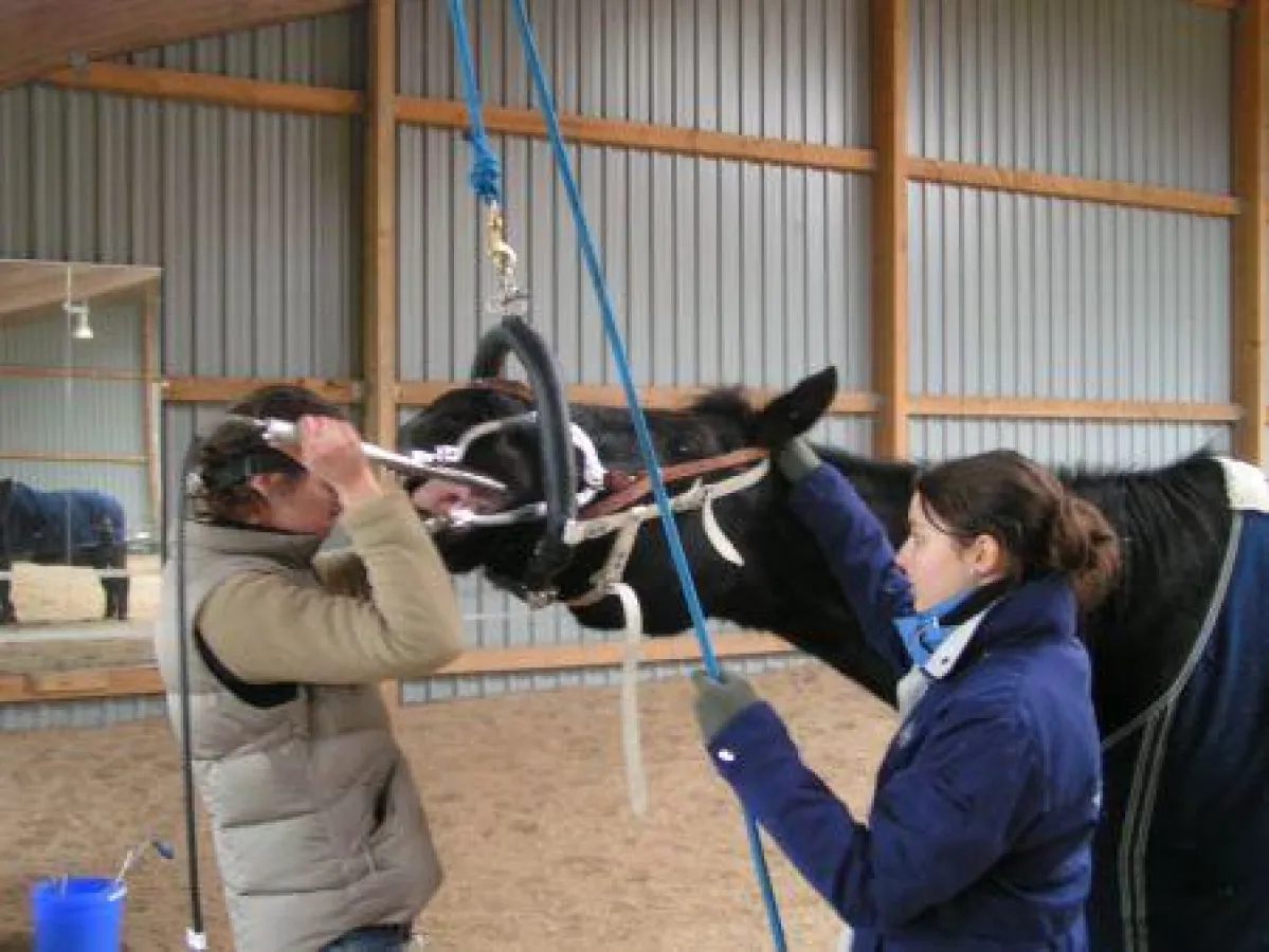 Nur 2 Pferde, welchen die Wolfszähne entfernt wurden, mußten sediert werden. Alle anderen Pferde konnten frei stehend und ohne Beruhigungsspritze behandelt werden.