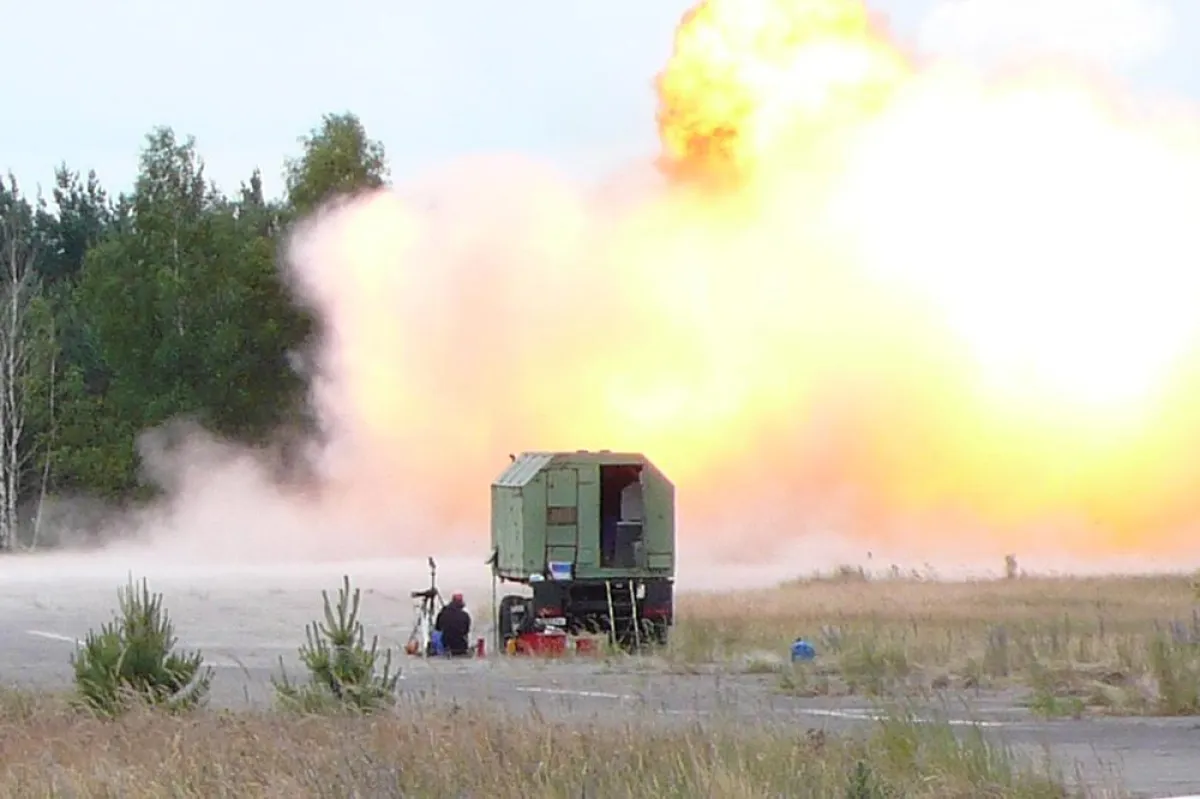 Bereits in nur 25 Meter Abstand von dem Sprengstoff hat das Unternehmen aus dem westfälischen Münster den ersten von insgesamt drei Versuchsaufbauten eingerichtet - einen Container mit drei Fenstern: Das spezielle sprenghemmende Wendefenster BLASTWIN® aus Aluminium, das der Druckwelle sowohl im geöffneten als auch im geschlossenen Zustand stand hält. Im geöffneten Zustand schließt das Fenster durch die Druckwelle und lässt den gefährlichen Überdruck nicht in den Raum.