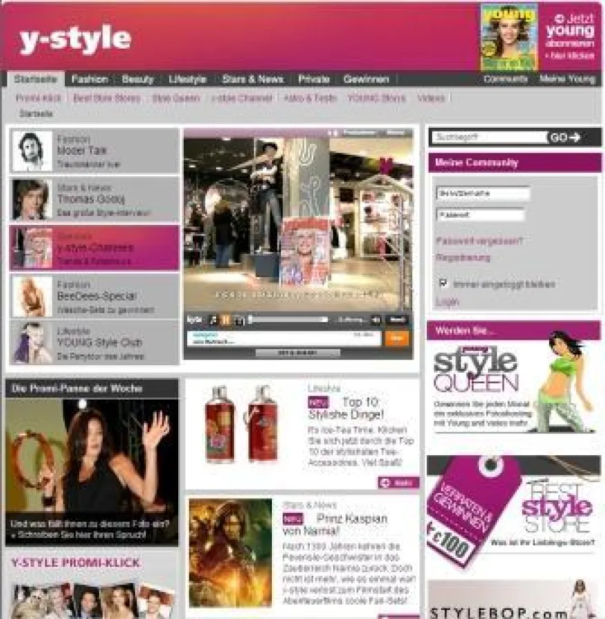Auf der Startseite befindet sich nun eine Multimedia-Box, in der die Top-Themen der Website im XXL-Format angeteasert werden. Weiterhin enthält die Box einen Teaser auf den Style-Scout-Kanal, darin publizieren offizielle YOUNG-Scouts aus verschiedenen Metropolen zu den aktuellen It-Looks von der Straße. User können diese kommentieren, an Votings zum Look teilnehmen und darüber live chatten. Im zweiten Kanal können die Nutzerinnen selbstentdeckte Looks als Videoclip oder Foto vom Computer oder unterwegs vom Handy aus hochladen.