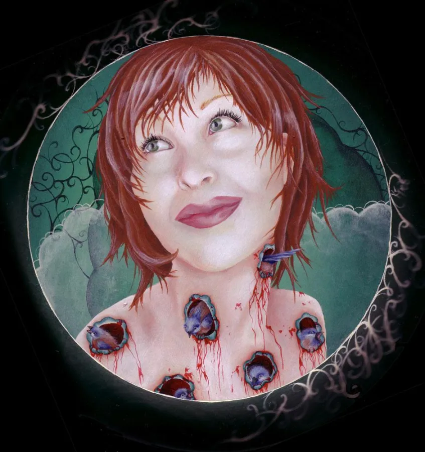 Kristen Ferrell hat sich für ihre neueste Ausstellung in der Strychnin Gallery im September selbst übertroffen: sage und schreibe 100 Arbeiten auf Holz und Papier sowie Skulpturen und Zeichnungen hat die symphatische Mitt-Dreissigerin in einer wahren Tour de Force erschaffen. Ihre farbenprächtigen Werke liegen zwischen Thematiken des Symbolismus – wie Krankheit, Leidenschaft, Vision und Phantasie – und des Surrealismus. Sie zeugen vom Zustand zwischen Wahn und Wirklichkeit, Träumen und Wachen.