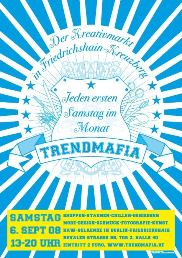 Am Samstag, 6. September 2008, lockt Trendmafia, der Kreativmarkt für Berliner Jungdesigner auf dem RAW-Gelände in der Revaler Str. 99 von 13:00 bis 20:00 Uhr zum vierten Mal in seine großen Tore.