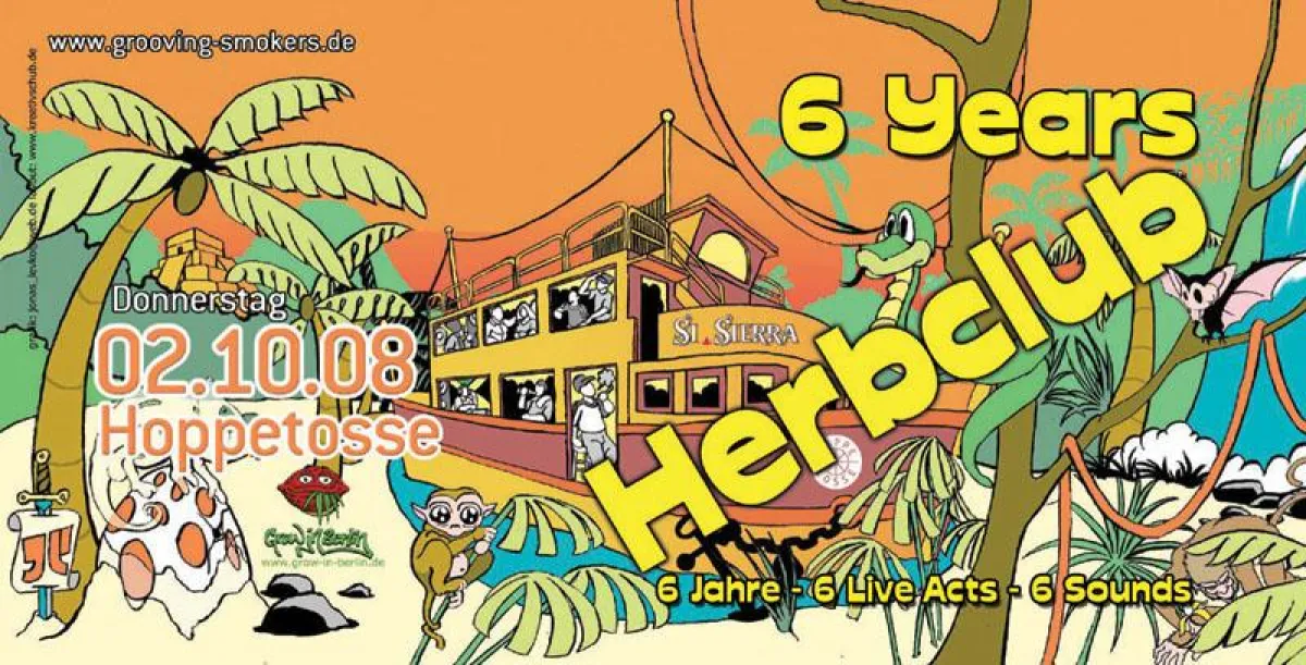 6 Jahre Herbclub findet am 2.10. ab 22:00 Uhr auf der MS Hoppetosse statt.