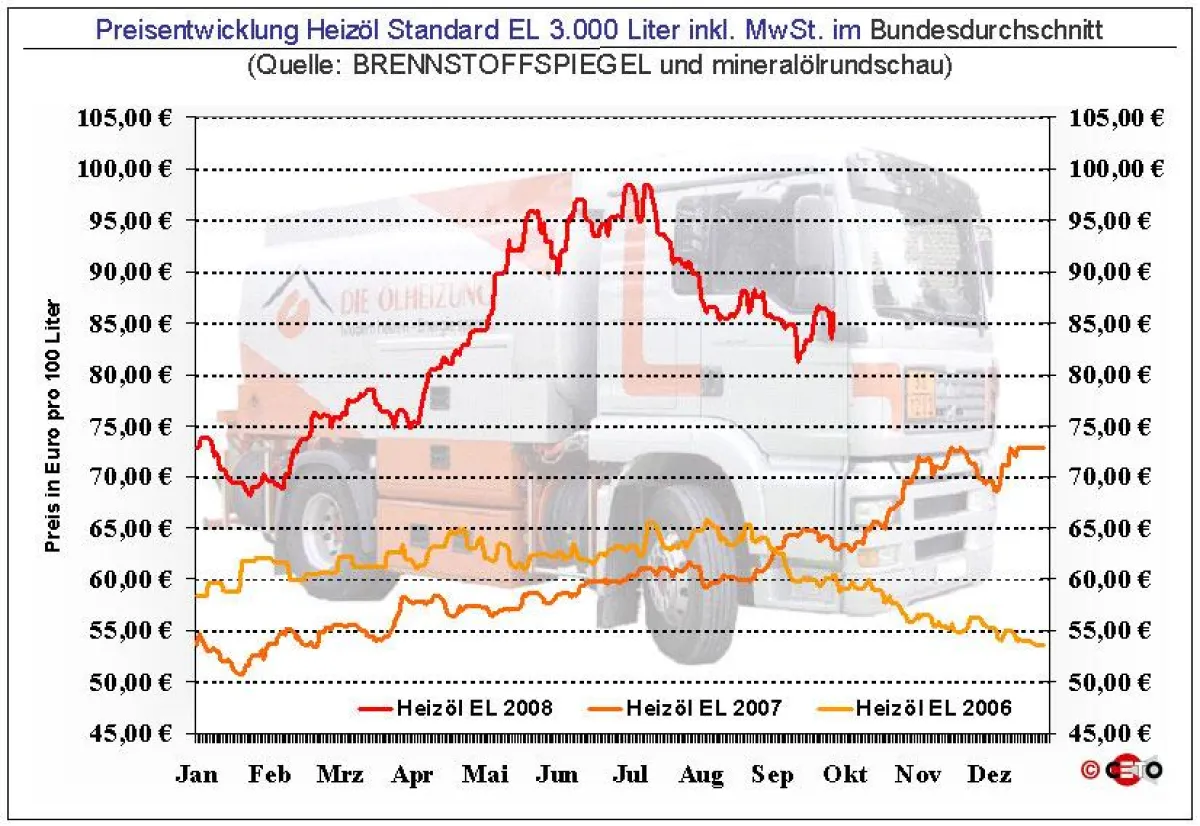 Monatlich werden in 161 deutschen Städten Endverbraucherpreise für 1.600 und 3000 Liter Heizöl Extra Leicht und die damit energiegleiche Menge Erdgas und anderer Energieprodukte erfasst sowie verschiedene Marktdaten veröffentlicht.