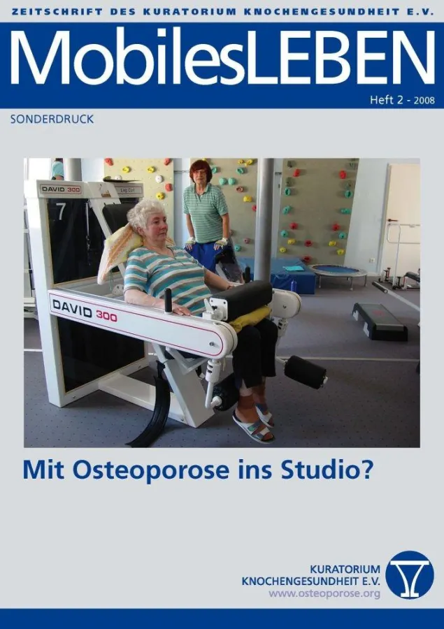 Die Broschüre „Mit Osteoporose ins Studio“ kann gegen Briefmarken im Wert von 2,50 Euro zzgl. eines mit 0,90 Euro frankierten Rückumschlages bestellt werden beim