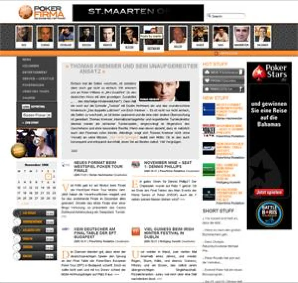 Pokerfirma.de ist ein erfrischendes neues Projekt der beiden Pokerjournalisten Götz Schrage und Rosi Grünstäudl. Täglich informieren sie über alles Aktuelle und lassen den Leser einen Teil der Pokerwelt werden. Die Seite bietet außerdem ein kostenloses RSS-Feed, das jeder auf seiner eigenen Webseite installieren kann, um seinen Besuchern einen Mehrwert zu bieten.