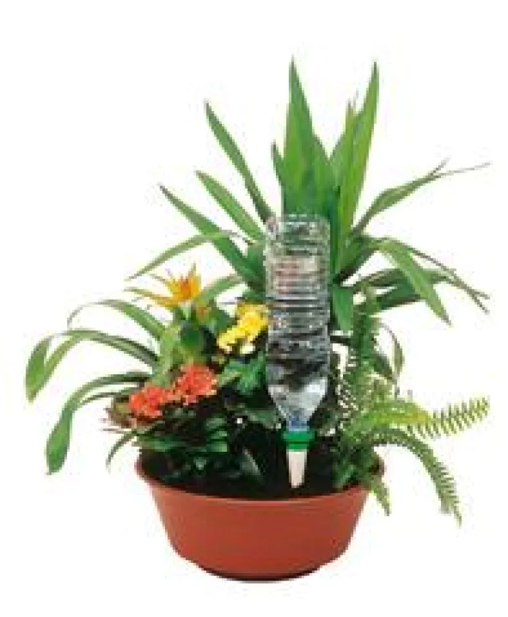 Die Wahl der Flaschengröße richtet sich nach der Dauer der Abwesenheit. Mit einer Zweiliterflasche und einem 7-cl-Kegel kann die kontinuierliche und schonende Wasserversorgung der Pflanzen für die Dauer von rund 28 Tagen sichergestellt werden. Bei größeren Balkonkästen sind mehrere Kegel anzubringen. Außerdem besteht die Möglichkeit, das Gießwasser mit löslichem Dünger anzureichern.
