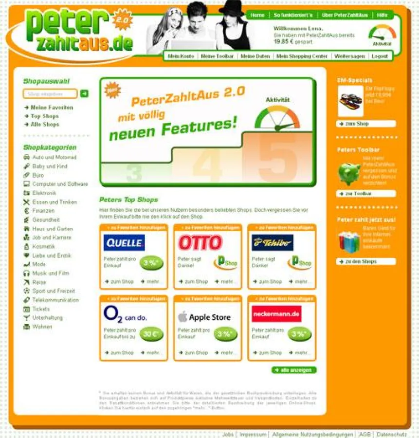 Mehr als 150 allgemein bekannte Online-Shops gewähren unter www.PeterZahltAus.de Prämien auf Einkäufe. Die Anbieter sind in übersichtliche …
