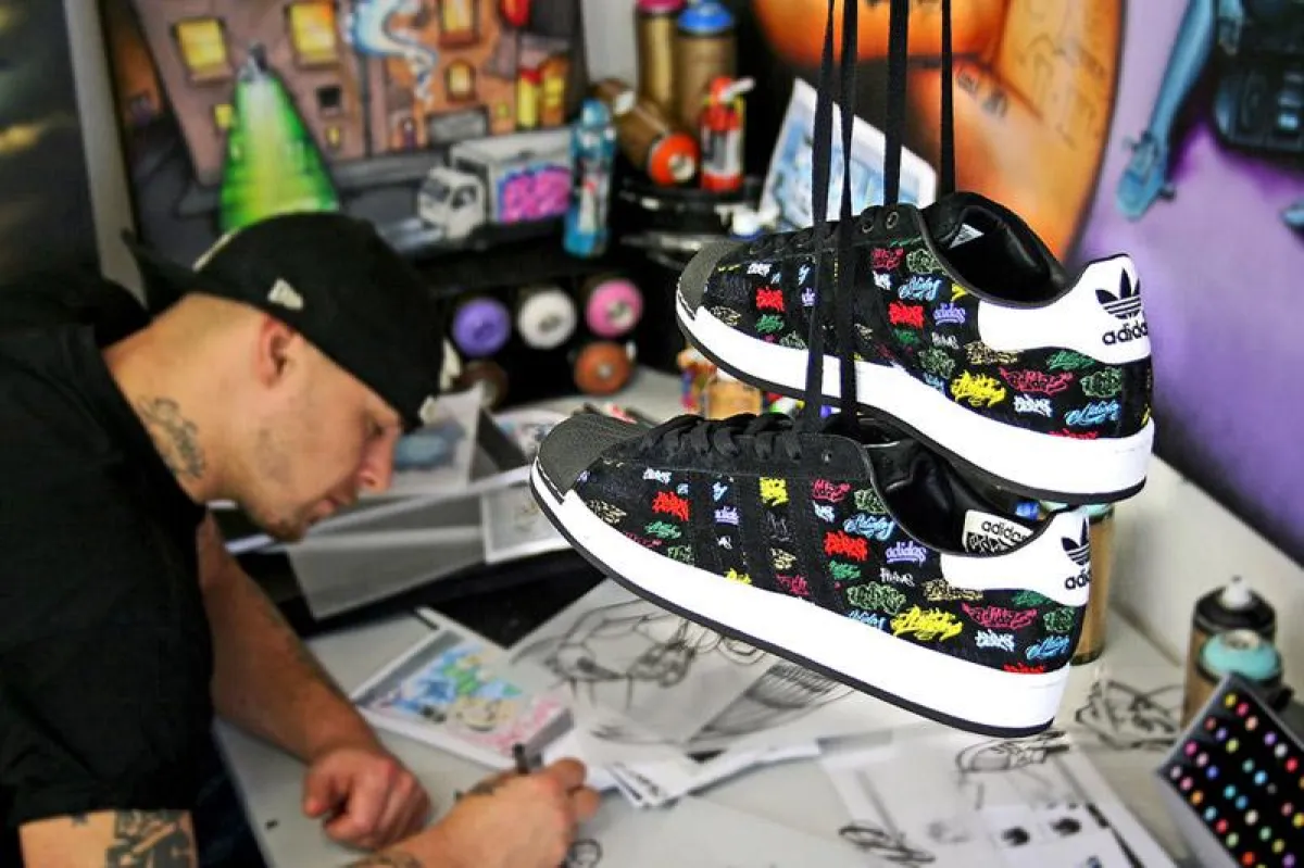 Zu diesem Zweck hat er sich still und heimlich und ohne es selbst beabsichtigt zu haben, einen Vertrag mit Adidas über das Design für vier exklusive Sneaker geangelt. Wie Scotty in einem aktuellen Interview mit der Bild Zeitung berichtet, muss es Adidas wohl positiv aufgefallen sein, dass er immer großen Wert auf künstlerische Qualität bei seinen Pieces gelegt hat. Jedenfalls bekam er aus heiterem Himmel einen Anruf und einige Monate später prangten seine coolen Designs auch schon auf den Sneakern, die jetzt in allen Footlocker-Filialen in den Regalen stehen.