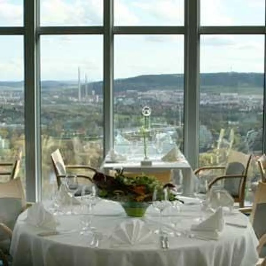 Fazit: Ob privat oder geschäftlich, ein Besuch in dem attraktiven Turm-Restaurant lohnt sich nicht nur wegen der vorzüglichen Aussicht. Die Experten des Varta-Führers zeichnen Küchenleistung und Ambiente im Restaurant Scala mit zwei Varta-Diamanten aus.