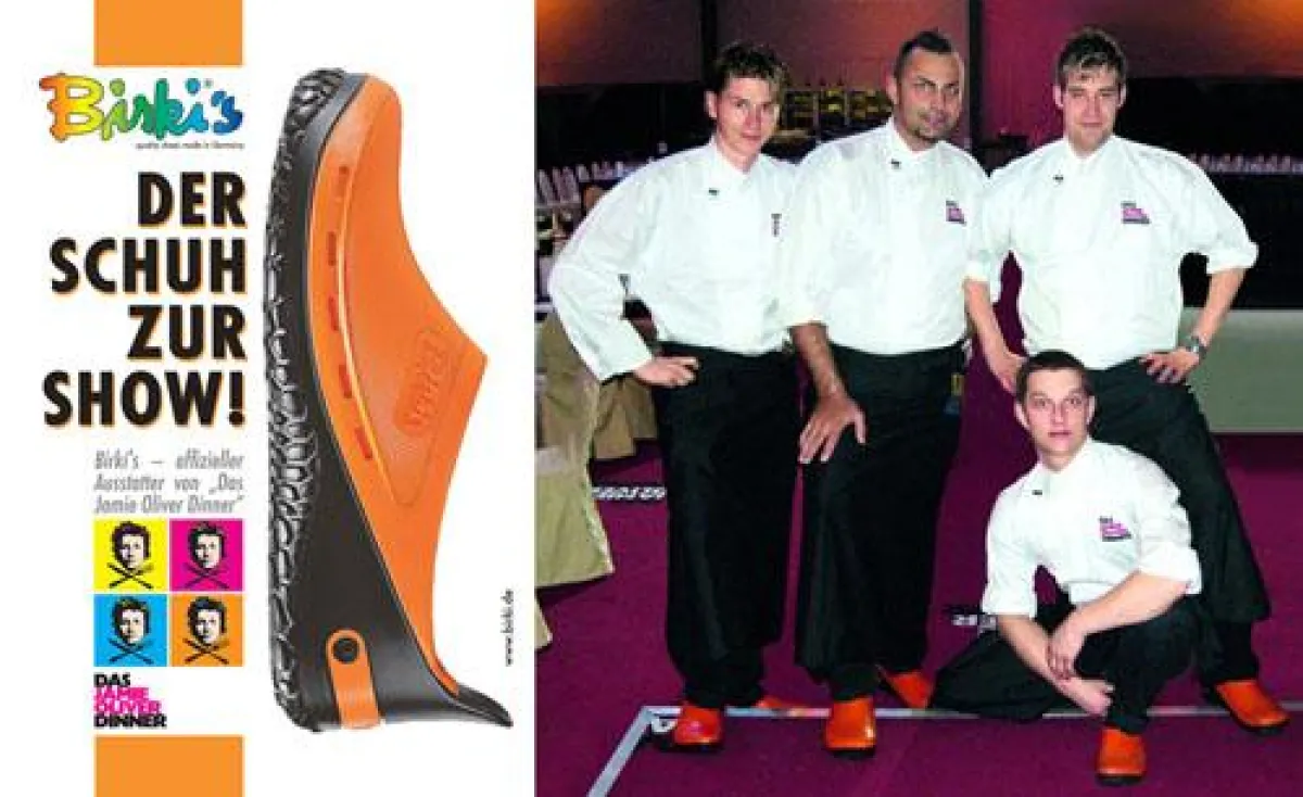 Das Jamie Oliver Dinner zu Gast in Frankfurt am Main: Da wird Abend für Abend in bester britischer Popkoch-Manier auf höchstem kulinarischem Niveau über die Bühne gewirbelt, dabei geschnibbelt und gebrutzelt. Kochlöffel und Messer sind jedoch nicht die wichtigsten Utensilien: Damit die Chefs aus der Küchenschmiede von Das Jamie Oliver Dinner sich trotz der Hektik voll konzentrieren können, tragen sie nur die Active-Clogs von Birki‘s: