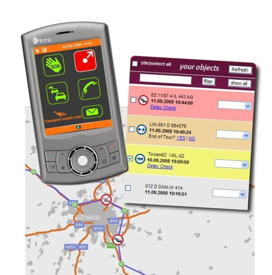Die Markteinführung der transport-inside Traffic Management Lösung hat einiges an Aufmerksamkeit erregt. Das bestechend einfach zu bedienende System der österreichischen Firma ticom Internetservices GmbH basiert auf jahrelanger Erfahrung im internationalen Transportgewerbe. Im Fahrzeug kommt es mit einem Mobilfunkhandy mit integrierten GPS-Empfänger aus, auf der Seite des Disponenten wird lediglich ein PC mit Internetanschluss benötigt.
