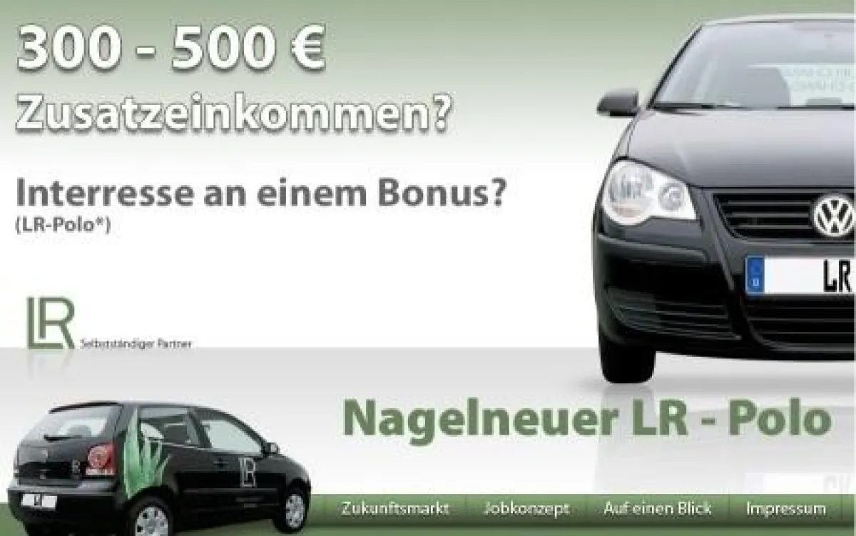 (openPR) Nach dem gelungenen Auftakt der LR Polo Aktion präsentiert das Vertriebsbüro Albrecht seit kurzem die neue Internetseite lr-polo.net mit einem innovativen Job-Konzept. Dieses ermöglicht jedem begeisterten Menschen, innerhalb kurzer Zeit einen neuen VW Polo zu fahren und einen lukrativen-Nebenverdienst zu erzielen.