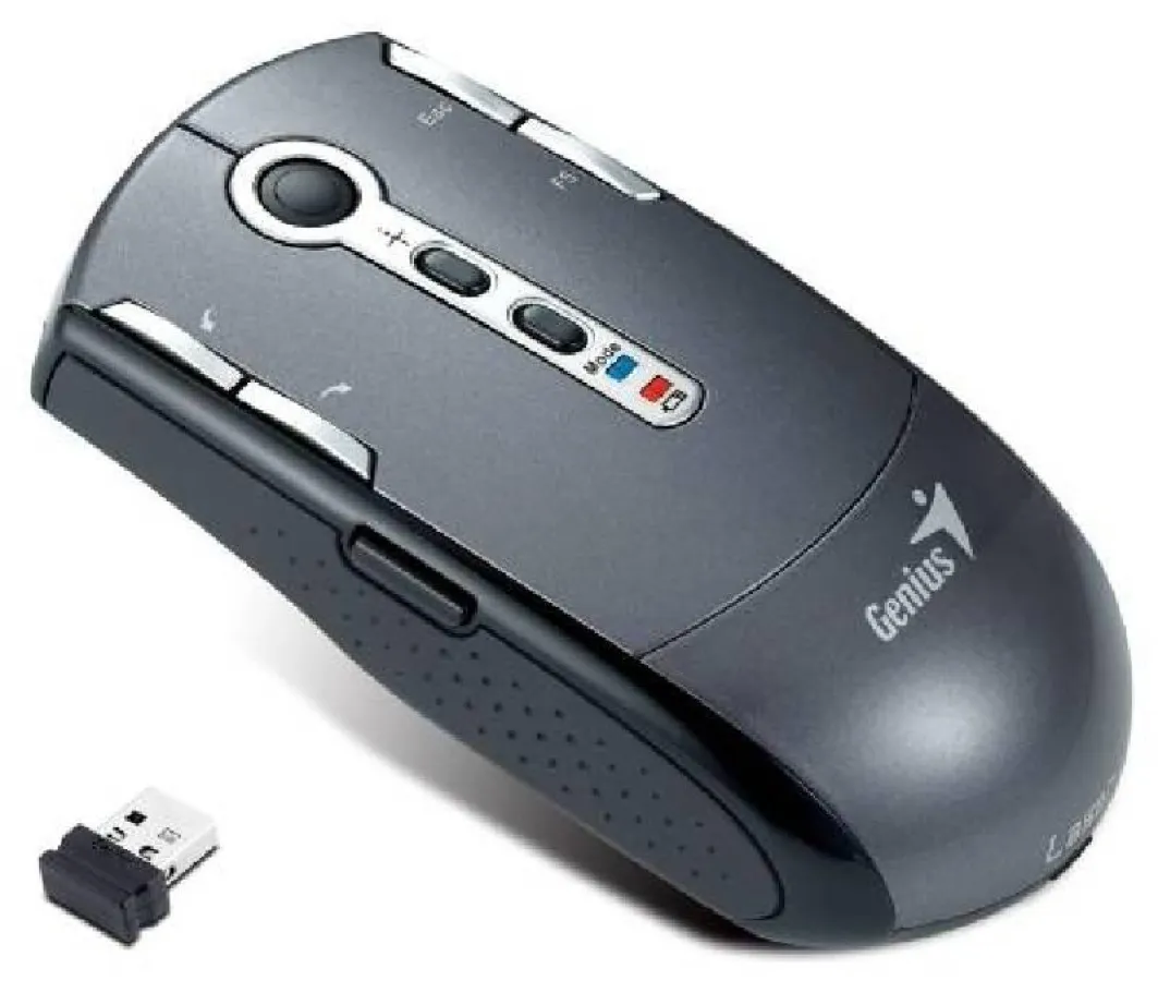 Selten ist bei Präsentationen ein Presenter zur Hand. Oft genug müssen drahtlose Notebookmäuse ohne passende Tastenbelegung und mangelnde Zeigemöglichkeiten aushelfen. Denn diese finden sich in fast jeder Laptop-Tasche. Genius macht aus der Not eine Tugend und bringt mit der Navigator T835 Laser einen Presenter, der garantiert nie in der Schreibtischschublade vergessen wird, denn er ist gleichzeitig die Maus für den Arbeitsalltag. Dies zeigt sich schon am Gehäuse: Es liegt griffig in der Hand und gleitet als symmetrische und gleichwohl ergonomische Maus über den Schreibtisch.