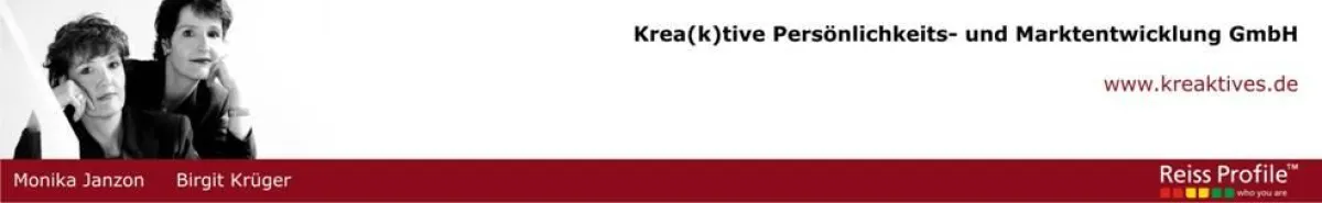 Die Krea(k)tive Persönlichkeits- und Marktentwicklung GmbH baut auf eine ungewöhnliche Partnerschaft: die Zusammenarbeit der eineiigen Zwillinge Monika Janzon und Birgit Krüger sowie den angeschlossenen Beraterkollegen mit sich ergänzenden Beratungsschwerpunkten.