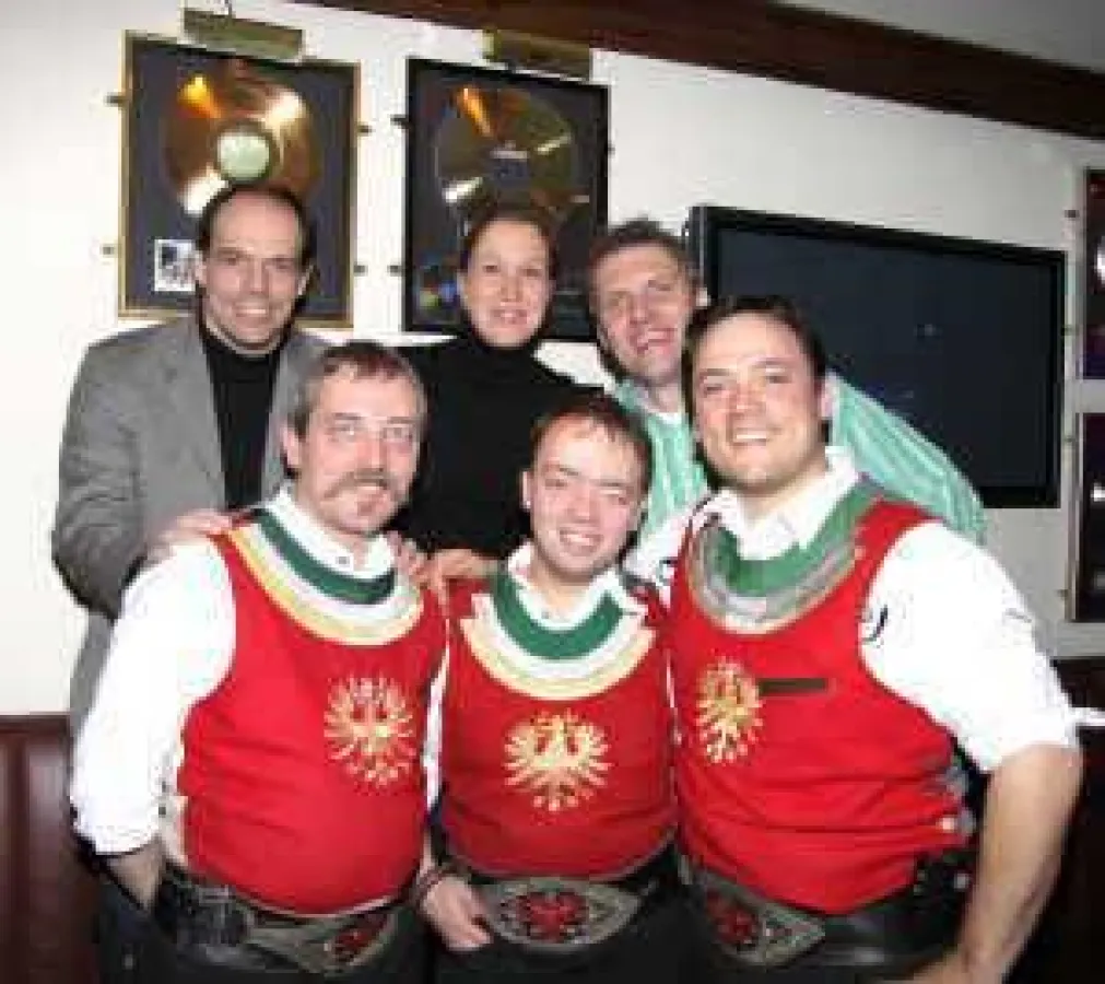 Vor der Show trafen sich die drei Jungs mit ihrer Plattenfirma Koch Universal Music. Auf dem Foto: vorne (v.l.n.r.): Manfred Höllwarth (Ursprung Buam), Martin Brugger (Ursprung Buam), Andreas Brugger (Ursprung Buam) hinten (v.l.n.r.): Ralf Schedler (Label Head Koch Universal Music), Birte Goldbrunner (PM Koch Universal Music), Franz Wolf (A&R Manager Koch Universal Music)