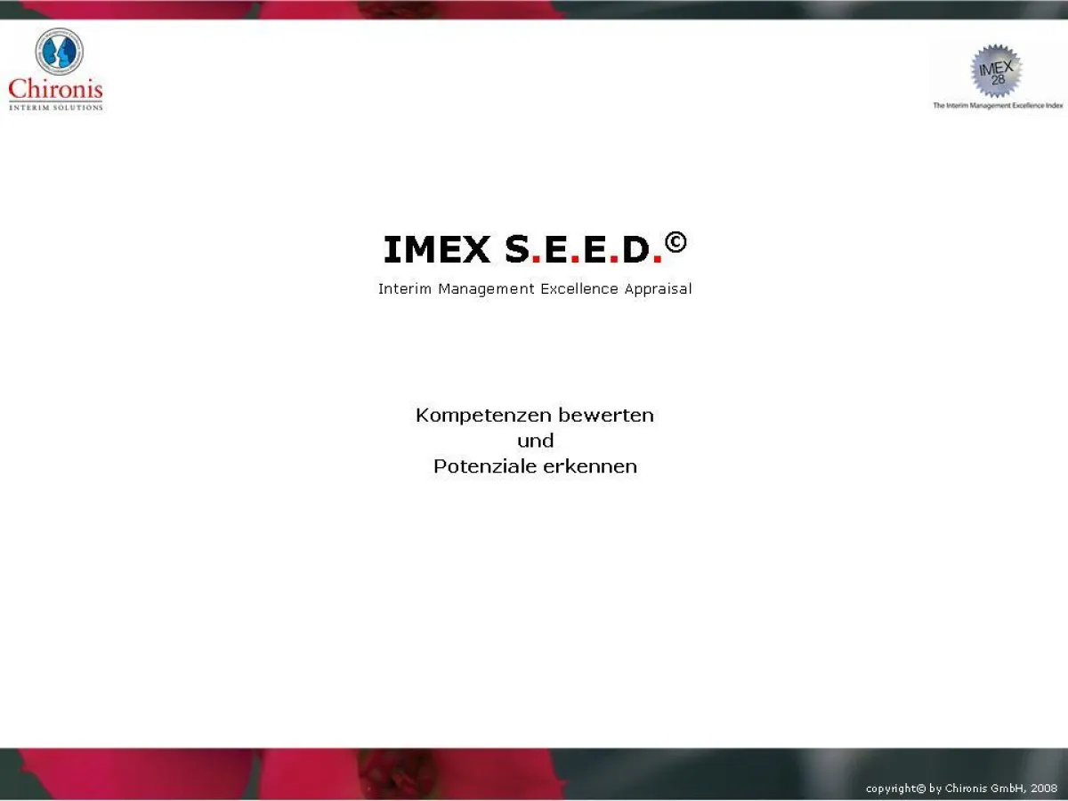 Fach- und Führungskräfte für das Berufsbild des Interim-Managers zu gewinnen, ist Gegenstand eines neuen Qualifizierungskonzeptes namens SEED. Als komplementäres vierteiliges Modul für Outplacement- und Transfermaßnahmen prüft es interessierte Kandidaten auf ihre grundsätzliche Eignung fürs Interim-Management und macht sie in Workshops mit zentralen Qualifikationen vertraut. Neben dem Erwerb der aufs Interim-Management zugeschnittenen fachlichen und persönlichen Kompetenzen setzen sich die Teilnehmer vor allem mit dem Schritt in die Selbstständigkeit auseinander. Sie lernen Finanzierungs- und Förderangebote kennen, vertiefen rechtliche und steuerliche Fragen und erarbeiten konkrete Businesspläne und Beratungskonzepte.