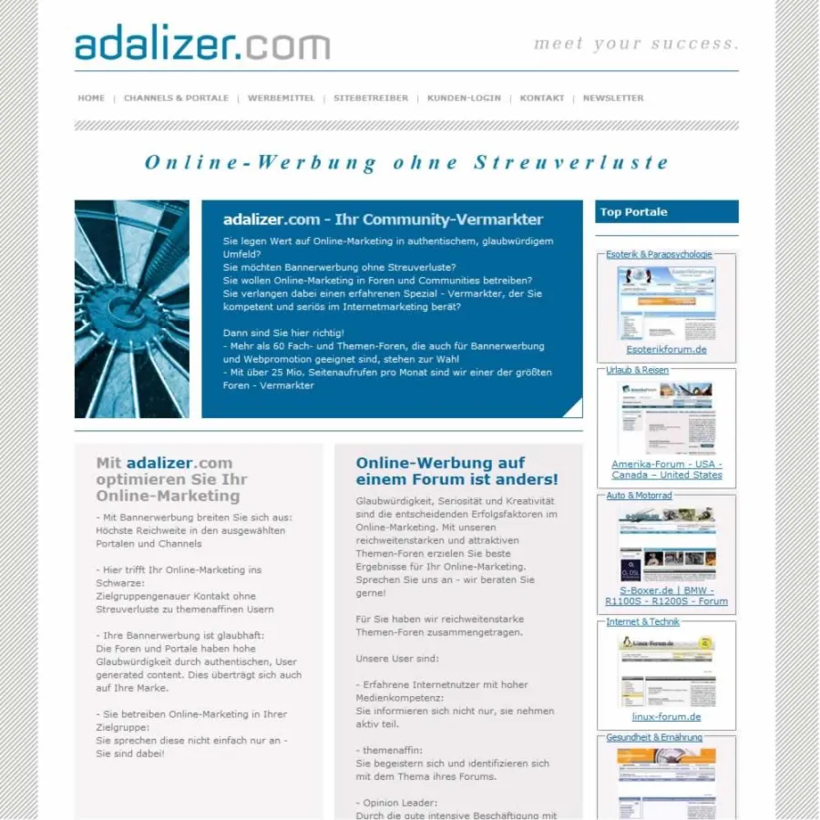 Adalizer.com als Spezialvermarkter für Themenforen und –Communities vermarktet inzwischen Werbeflächen von 61 namhaften Foren. Ein Relaunch der Website wurde notwendig, um das Portfolio übersichtlicher und nutzerfreundlicher darzustellen.