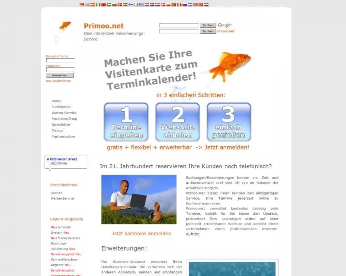 "Gerade im Tourismusbereich wird es immer wichtiger den Gast direkt anzusprechen und mit ihm in seiner Landessprache zu kommunizieren. Das können kleine Unternehmen selten bieten, so daß sie vielleicht Einbußen hinnehmen müssen." sagt Nico Spataro, Head-Office von Primoo.net. "Wir kommunizieren und reservieren nun in der Landessprache der Gäste und bieten unseren Kunden so die Möglichkeit international aufzutreten...". Folgende Sprachen stehen unter anderem zur Verfügung: deutsch, englisch, russisch, spanisch, italienisch, albanisch, dänisch, niederländisch, französisch, griechisch, ungarisch, lättisch, polnisch, portugiesisch, rumänisch, türkisch.
