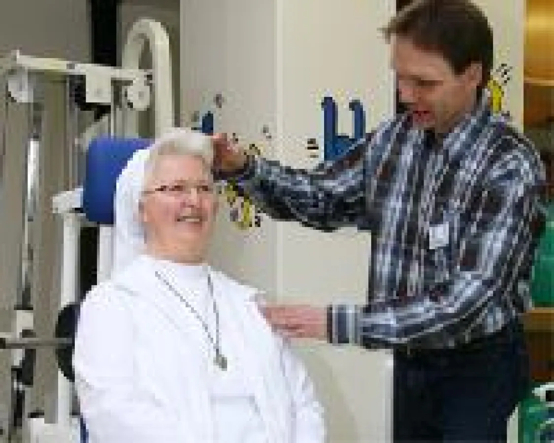 (openPR) Fleißig trainiert Schwester Engelharda an der neuen Maschine in einem Raum der physiotherapeutischen Abteilung des Prosper-Hospitals. Dabei macht sie einen überaus zufriedenen Eindruck. Immer, wenn es der anstrengende Dienst zulässt, kommt die 69-jährige Ordensschwester hierher, um ihre Muskulatur zu stärken und sich körperlich fit zu halten. Wie sie nutzen inzwischen zahlreiche Mitarbeiter des Krankenhauses das Angebot und absolvieren regelmäßig Trainingseinheiten an dem Gerät.