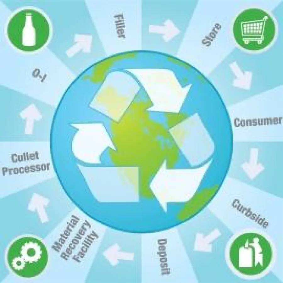 Recycling-Glas macht heute mehr als die Hälfte der verwendeten Rohstoffe bei O-I aus. Die Quelle dieser eingesetzten Altglas-Scherben ist von Land zu Land jeweils verschieden. Doch wo immer möglich, nutzt O-I Recycling-Anlagen in der Nähe seiner Produktionsstätten. In einigen Fällen hat O-I sogar Altglas Recycling-Anlagen in seine Fertigungsstätten integriert, wie etwa im O-I-Werk in Beziers in Frankreich. Betrieben von dem auf die Verwertung von Glas spezialisierten Unternehmen IPAQ, wird die Anlage in der Lage sein zwischen 120.000 bis 150.000 Tonnen Glas pro Jahr zu recyceln. Die Verkürzung der Transportkette macht eine weitere Senkung der Gesamt-Energiekosten bei der Glasherstellung möglich.