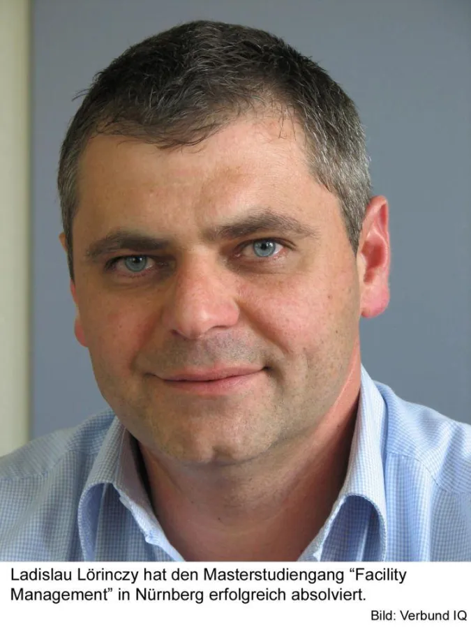 Ladislau Lörinczy hat während eines FM-Projekts im Nürnberger Fußballstadion „die Komplexität von Facility Management live erlebt und fasziniert“. Der 43-jährige Ingenieur und Servicetechniker mit Schwerpunkt Fördertechnik und Gebäudemanagement fasste daher den Entschluss, seine Kenntnisse im Bereich Facility Management (FM) zu erweitern. Sein Ziel: Fachlich am Ball bleiben und die eigenen Fähigkeiten immer auf dem neuesten Stand halten.