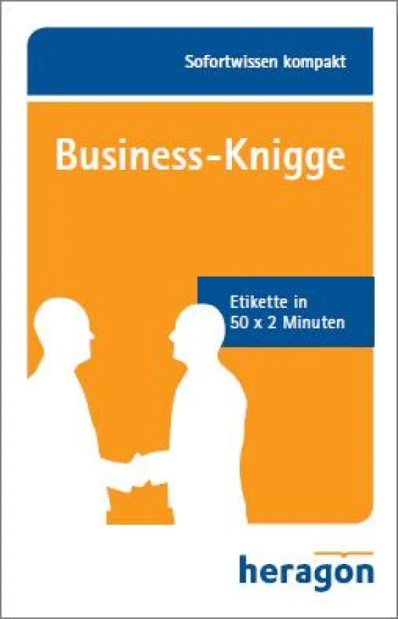 Im Geschäftsalltag die richtigen Umgangsformen pflegen – wer sich hier nicht auskennt, hinterlässt schnell einen unpassenden Eindruck. Beim Vermeiden entscheidender Fehler hilft ab sofort der „Business-Knigge“ aus dem Freiburger Heragon-Verlag. Der besondere Kick dabei: Der kompakte Ratgeber erscheint nicht in klassischer Buchform, sondern als pfiffiges Kartenset.
