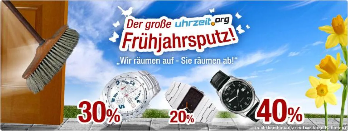 „Wir kalkulieren wirklich am Limit, Gutscheine und Vorkassen-Rabatt fallen bei der Frühjahrsputz-Aktion weg, damit wir im Endeffekt nicht drauf zahlen.“, so Projektleiter Björn Brandt vom Hamburger Onlineshop für Uhren und Schmuck, uhrzeit.org.