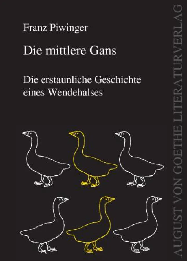 (openPR) Franz Piwingers’ am 15.06.2008 erschienener Debütroman mit dem treffenden Titel „Die mittlere Gans“ erzählt die Geschichte des männlichen Protagonisten Richard Regnier, der aufgrund seiner häufigen Änderungen in Biographie und Alltagsleben zu Recht den Beinamen „Wendehals“ verdient. Dabei spielt der Titel auf das Prinzip an, das schon Sokrates erkannte: Bei einem Wechsel von einem zum anderen Herrschaftssystem ist stets dessen „Inner Circle“ betroffen – nicht jedoch die Mitte und somit Masse der Gesellschaft.
