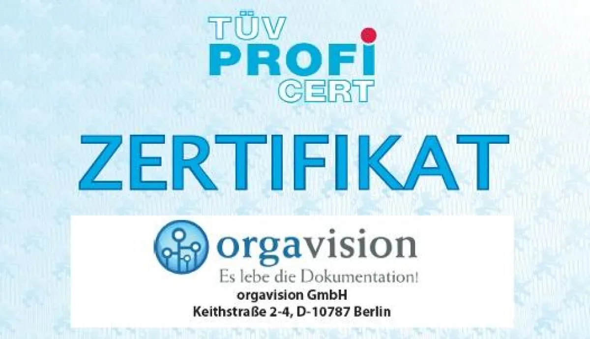 (openPR) Berlin, 06.05.2009 - orgavision, Anbieter einer online-basierten Softwarelösung für die Erstellung von Unternehmensdokumentationen und Qualitätsmanagement-Handbüchern, ist vom TÜV Hessen im Rahmen des TÜV PROFiCERT-Verfahrens auf Herz und Nieren geprüft worden. Das Ergebnis der Untersuchung von Datenschutz und -sicherheit, Unternehmenszielen und -philosophie, Kundenprozessen und weiteren allgemeinen Anforderungen: orgavision erfüllt alle Kriterien des TÜV PROFiCERT-Verfahrens und ist ab sofort berechtigt, das begehrte PROFiCERT-Zertifikat zu führen. Mit der Auszeichnung durch den TÜV Hessen zahlt sich die Qualitätsstrategie bei der Softwareentwicklung sowie zahlreichen Maßnahmen zur Datensicherheit schon wenige Wochen nach der Markteinführung aus.