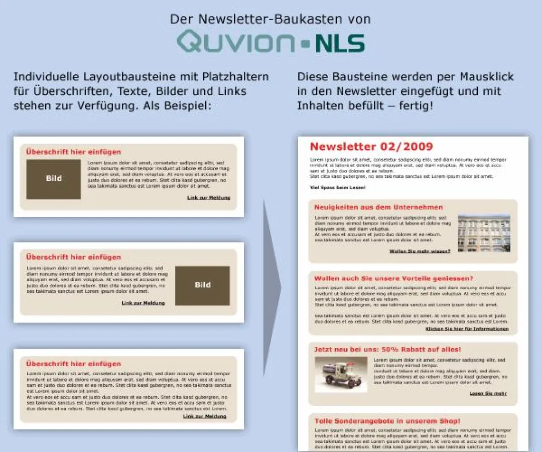 Deshalb bietet die Newsletter-Software "Quvion-NLS" jetzt einen Baukasten für Newsletter.