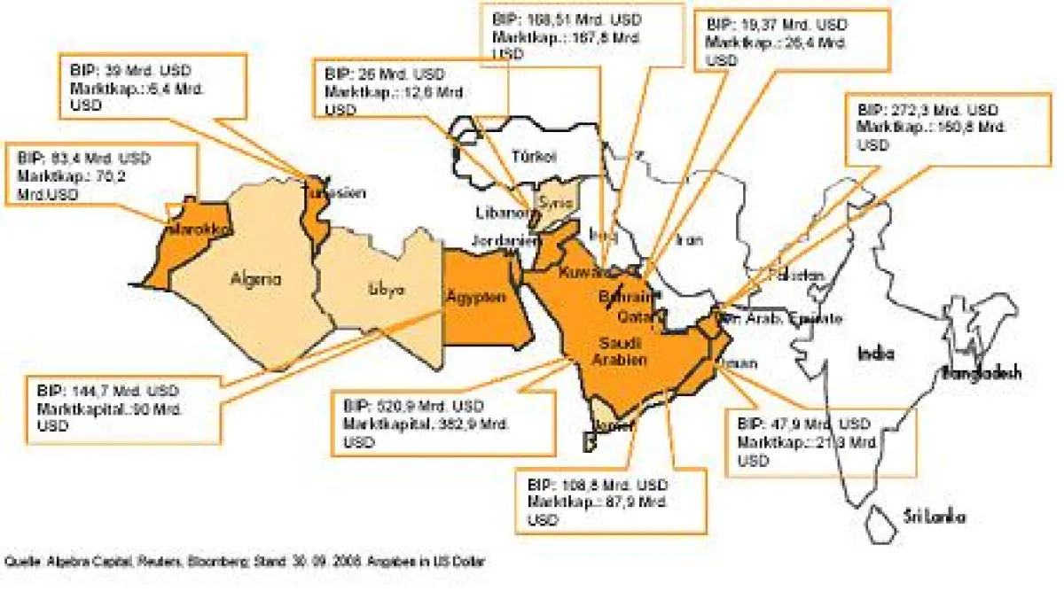 Dabei ist die Marktkapitalisierung in Arabien in 5 Jahren um mehr als das 8-fache gewachsen: von 132 Mrd. US$ (2002) auf 723,9 Mrd. US$ (Dezember 2008)