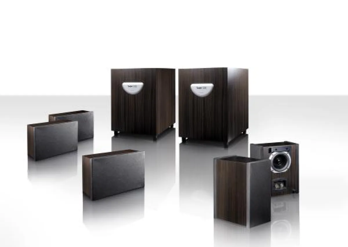 Das Heimkino-Set besteht als 5.2 System aus drei Front-Lautsprechern mit jeweils zwei neuentwickelten Flachmembran-Chassis, zwei Rear-Lautsprechern und gleich zwei leistungsstarken Subwoofern. Die Rear-Lautsprecher sind je nach persönlicher Präferenz und Anwendungszweck in zwei unterschiedlichen Ausführungen wählbar: Für den Musik-Liebhaber - oder falls es keine Möglichkeit gibt, die Boxen an der Wand zu befestigen - sind Front- und Rear-Lautsprecher baugleich (Concert-Set). Für „State of The Art“-Surround-Klang im Wohnzimmer können anstelle der Direktstrahler auch Dreiwege-Dipol-Boxen gewählt werden (Cinema-Set). Das Subwoofer-Paar bringt neben zusätzlicher Bassleistung den Vorteil mit sich, dass beide Tieftöner räumlich separat platziert werden können. Außerdem wird durch die Teilung störenden Raumresonanz-Frequenzen entgegengewirkt, sogenannte „Stehende Wellen“ werden eliminiert. Das heißt: Der Bass wird „trockener“, ein mögliches Dröhnen verschwindet und die Genauigkeit der Wiedergabe nimmt zu.