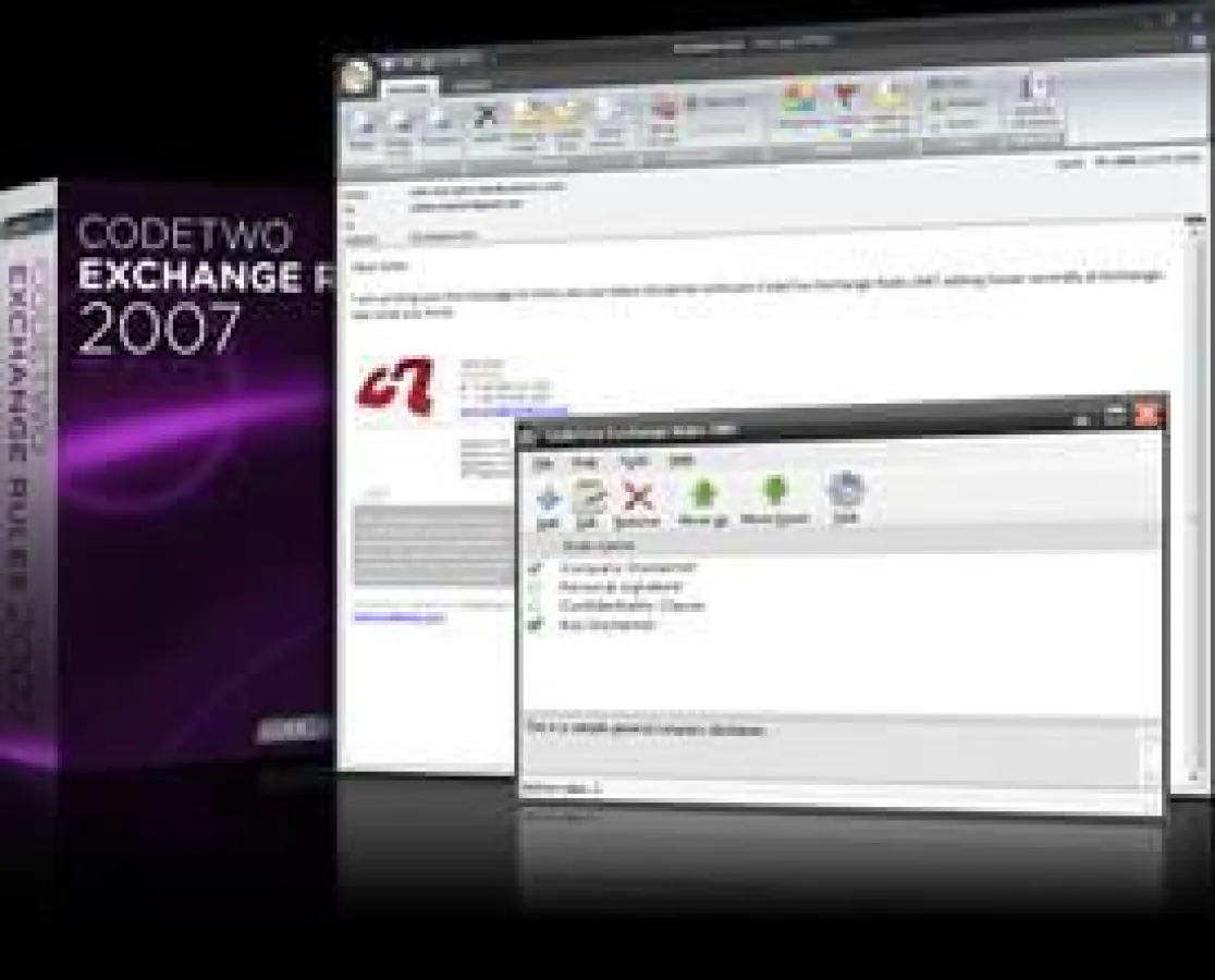 CodeTwo Exchange Rules 2007 fügt über Microsoft Exchange-Server 2007 ausgehenden E-Mails automatisch entsprechende Signaturen Footer und Disclaimer hinzu, mit Personen- oder Unternemensangaben. Alle Regel für Mailsignaturen werden vom Netzvervalter auf dem Exchange-Server erstellt, konfiguriert und verwaltet. Die Version 2.0 des Programms von CodeTwo zeichnet sich durch enge Integration mit Active Directory aus, wo Personenangaben aufbewahrt werden. Anhand dieser Informationen erstellt man neue Footer und E-Mail-Signaturen.
