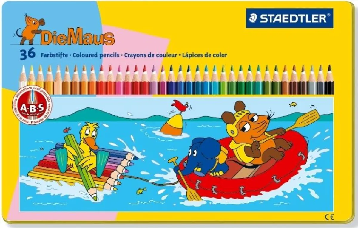 In Form von Lizenzprodukten mit sensationellen Motiven ist „Die Maus“ zu Gast bei STAEDTLER und sicherlich ein „Star Artikel“ in diesem Jahr. Seit Januar 2009 ist STAEDTLER der offizielle und weltweit exklusive Lizenzpartner für „Die Maus“ im Bereich Schreib- und Zeichengeräte. Seit dem Frühjahr gibt es ein Sortiment, welches nicht nur Kinderherzen höher schlagen lässt. Für ungebremste Kreativität sorgen dann A•B•S-Farbstifte, Bleistifte und Radierer sowie Fasermaler, Wachsmalkreiden und Spitzer als „Maus-Edition“ in fröhlich bunt gestalteten „Maus“ Verpackungen. Natürlich dürfen dabei auch ihre besten Freunde Elefant und Ente nicht fehlen, mit denen sie im Trio für bekannt lustige und unterhaltsame Szenen sorgt. So erzählt jede Verpackung eine eigene kleine Geschichte, die man sich nach Hause holen, sammeln und so an der kunterbunten Welt der Maus und Ihrer Freunde teilhaben kann.