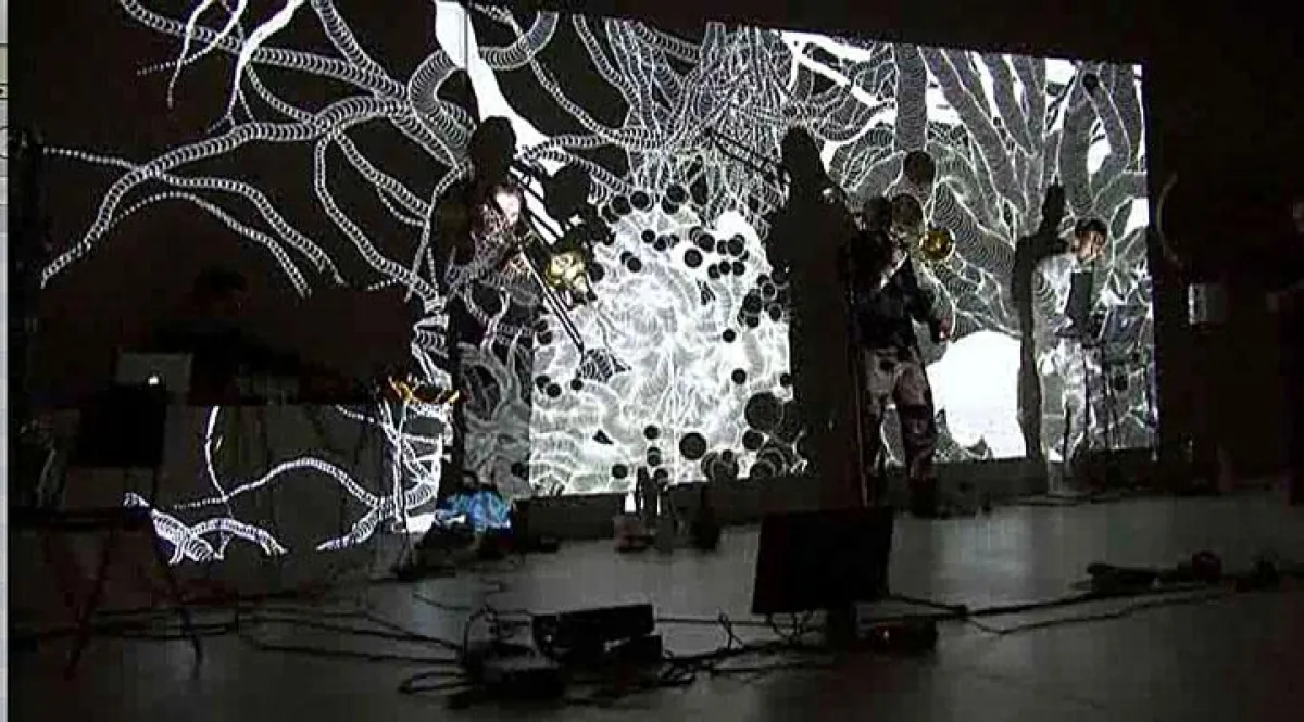 Das internationale Zusammentreffen bekannter junger Kunst- und Musikszenen wie u.a. RE:NEW (KOPENHAGEN/DÄNEMARK), IRTIJAL (BEIRUT/ LIBANON) und FRI RESONANS (TRONDHEIM/ NORWEGEN) verspricht Kunstkennern und -flaneuren, Musikliebhabern und Hörfreaks einen Rausch der Sinne, frei nach dem Motto:“ Spielt mir eine Landschaft im Nebel“. „Und plötzlich wird es überirdisch“ beschreibt Sven Hahne, Medienkünstler und Mitbegründer der Kölner FRISCHZELLE – Festival für Intermediale Improvisation-, den offenen Umgang mit Formen und Klängen der geladenen internationalen Avantgarde und Free-Jazz Szenen. Liegt es am Eingreifen, Setzen, Formulieren der Videokunst wenn die Musiker unerbittliche Intensität und Atmosphäre spielen? Minuten lang kann die professionelle Beiläufigkeit knapper instrumentaler und elektrischer Aktionen in einer momentanen Spärlichkeit gipfeln, die von suggestiver Computergraphik letztlich nur unterstrichen ist. Doch dann erhebt sich das Bild zum Zeremonienmeister und die „Bombe“ platzt. Wo das Konzert endet weiß zu Beginn keiner, denn Noten und Partituren gibt es auf der Bühne keine.