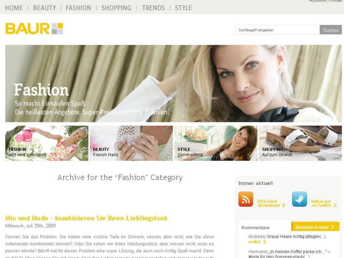 Alle Blog Beiträge werden parallel auch über Twitter http://twitter.com/BAUR_Versand , Facebook http://www.facebook.com/baur.versand und einen RSS-Feed verbreitet, so dass man auch Unterwegs z. B: mit dem Iphone schnell und unkompliziert die aktuellsten Infos nachlesen kann.
