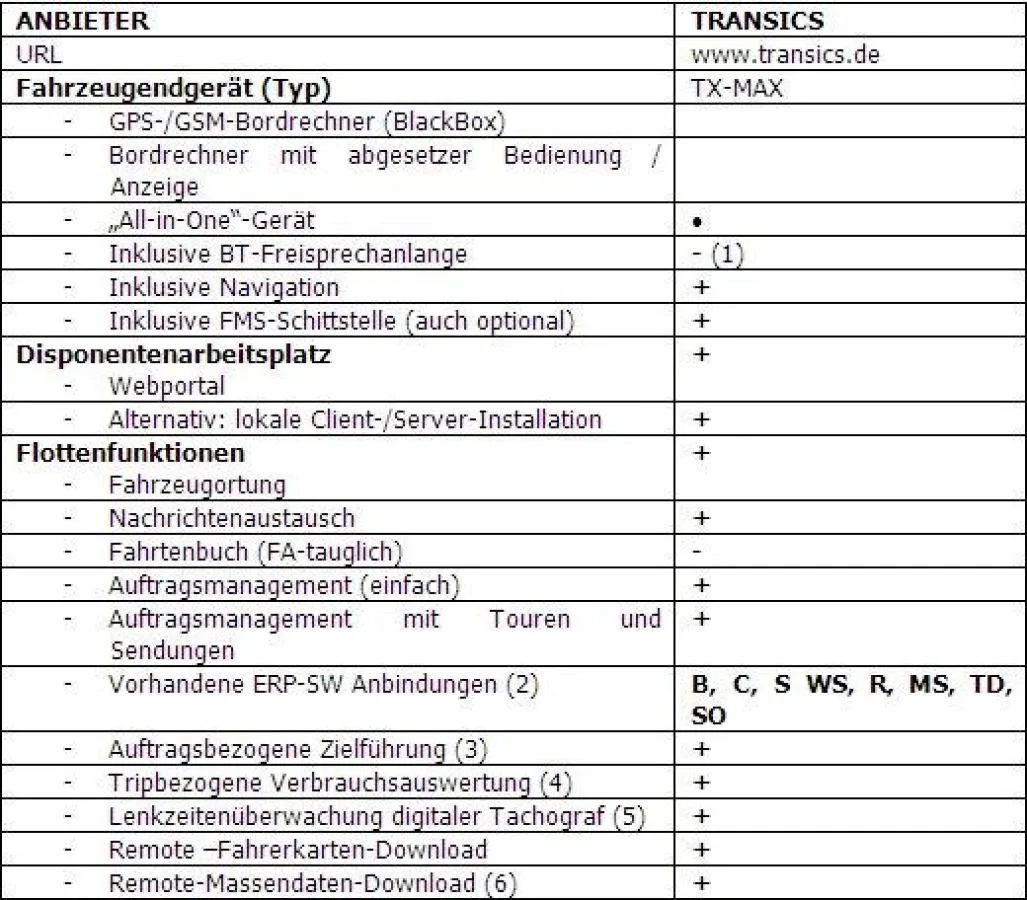 Transics wird als einer der wichtigsten Anbieter erwähnt.