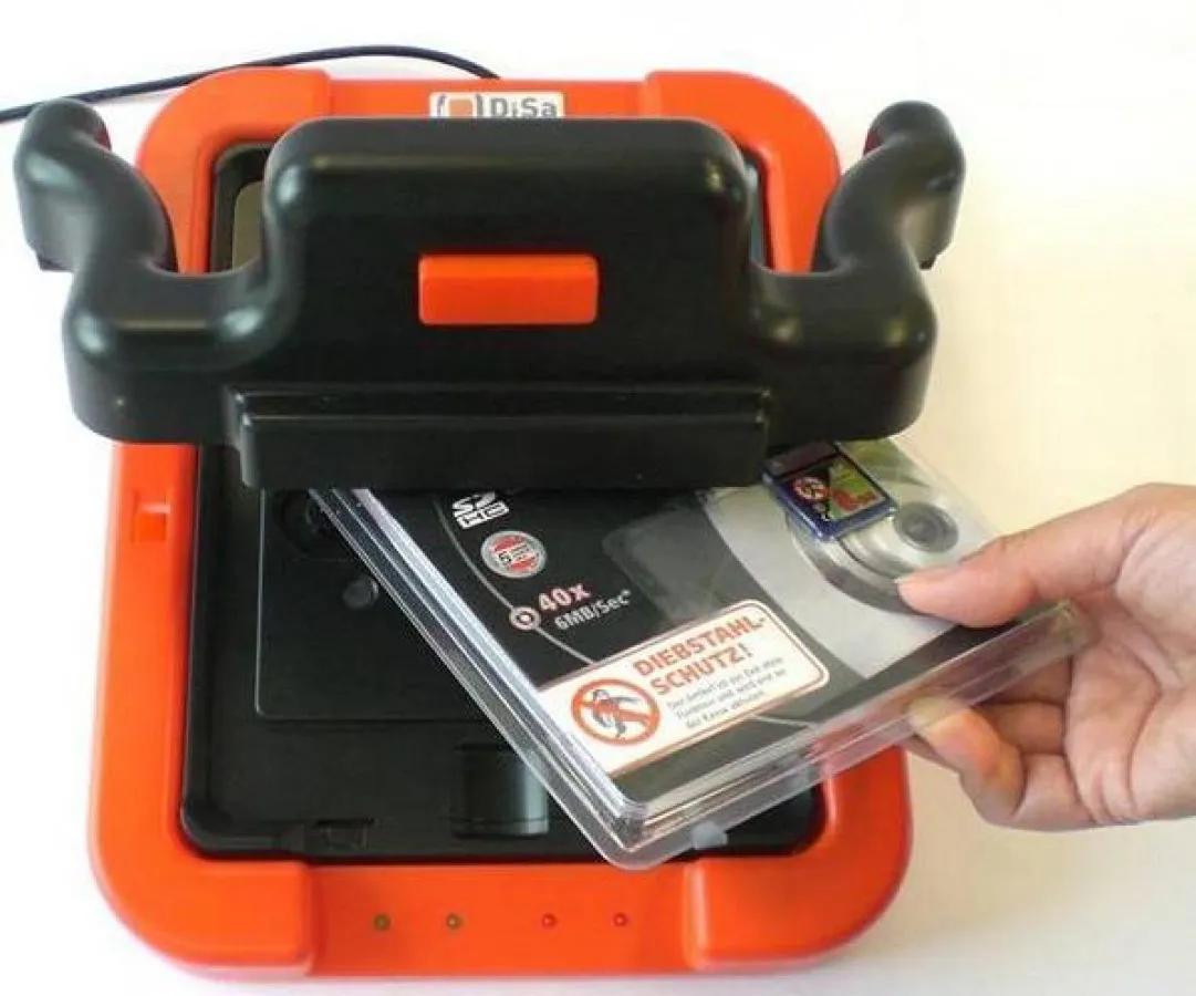 Das DiSa Warensicherungssystem wurde auf Basis der am Markt gängigsten (Blister-) Verpackungen für Speicherkarten in Zusammenarbeit mit Anbietern wie z.B. der Firma Hama entwickelt. Damit ermöglicht DiSa den Herstellern eine Auslieferung in gesichertem oder ungesichertem Zustand.