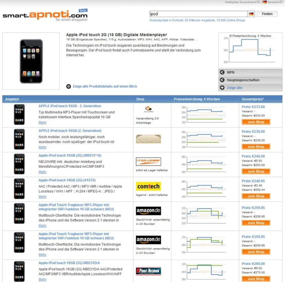 Vielen Online-Shoppern ist das junge Unternehmen schon länger ein Begriff. Das Team um Gründer und Geschäftsführer Gerold Herrmann bescherte den Verbrauchern im Oktober 2008 mit apnoti.com schon den ersten automatischen Preisbenachrichtigungsdienst mit Echtzeit-Technologie. Zusätzlich profitieren Preisbewusste auch von den beinahe wöchentlich neuen, kostenlosen Smart-Shopping-Features der Internet-Firma.